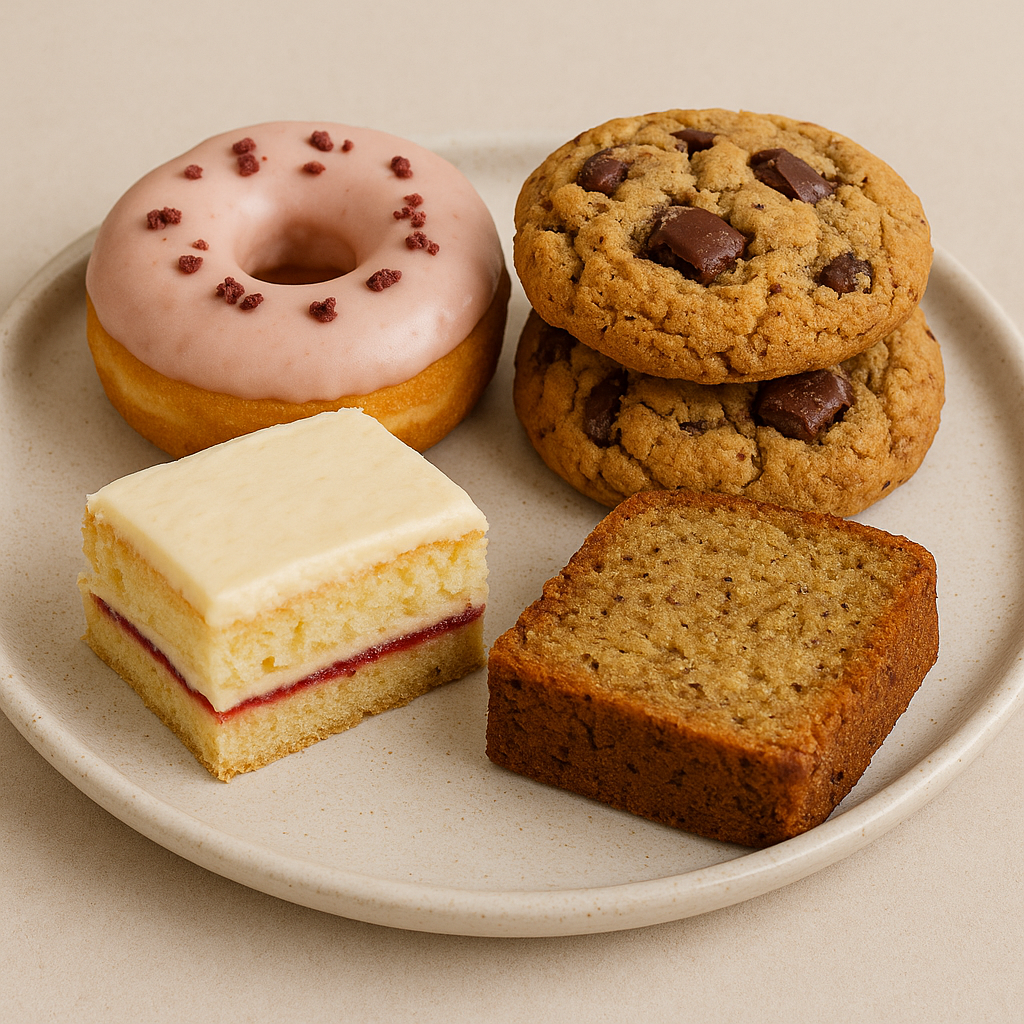 Tartas, donuts o bizcochos recién hechos, listos para enviar.