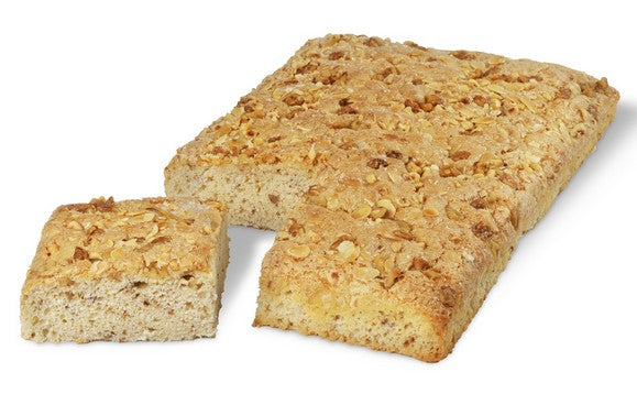 Cada plancha se hornea bajo pedido y se cubre con una mezcla de nueces, almendras, pasas y dátiles caramelizados que le dan un acabado crujiente y un aroma irresistible.